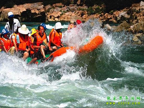 茅巖河漂流段是大庸城西20公里青魚潭往北一段。茅巖河雖灘險(xiǎn)流急,但河床坡度小,水位落差不大;險(xiǎn)灘較短(一般僅20余米長),而險(xiǎn)灘與險(xiǎn)灘間的距離卻較長(一般均逾千米),故浪濤適中,漂流有驚無險(xiǎn)。茅巖河主要景點(diǎn)有:血門溝、洞子坊、茅巖灘、夾兒溝、溫塘溫泉、麻陽古渡、茅巖河峽、水洞子瀑布等。沿河兩岸青山綠水、風(fēng)光如畫,故又稱“百里畫廊”。