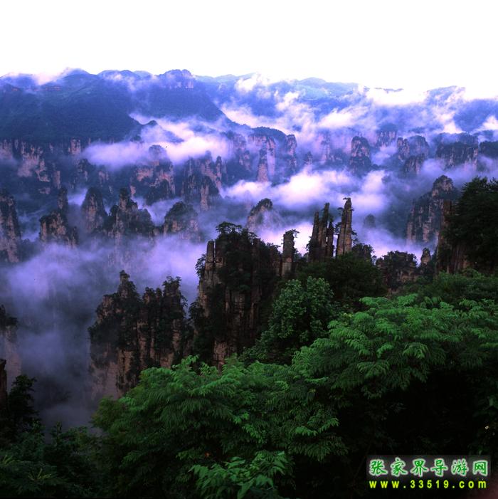 武陵源獨特的石英砂巖峰林在均屬國內(nèi)外罕見,在360多平方公里的面積中,目前所知有山峰3000多座,這些突兀的巖壁峰石,連綿萬頃,層巒疊嶂。每當雨過轉(zhuǎn)晴或陰雨連綿天氣,幽幽山谷中生出了云煙,云霧飄緲在層巒疊嶂間,云海時濃時淡,石峰時隱時現(xiàn),景象變幻萬千。霧,使晴日下堅硬的山峰變得妖嬈、飄逸和神秘。觀霧的最好季節(jié)是夏季,天子山是賞霧的最佳去處,也是攝影家常常涉足的地方。