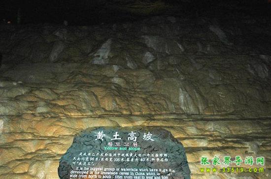 我們現(xiàn)在來到了黃龍洞最寬的大廳——南北寬達(dá)96米的天仙宮。天仙宮有洞內(nèi)最大的石瀑布群,南北寬62米,東西寬105米,落差達(dá)40米。人們給它取了一個(gè)很生動(dòng)形象的名字——黃土高坡?;蛟S您已經(jīng)看到了,黃土高坡上面竟然生長有植物!真是“洞中乾坤大”啊!它們是簡(jiǎn)單的蕨類植物。它們?yōu)槭裁茨軌蛟谶@兒生長呢?這主要因?yàn)楣夂献饔?,是日光燈神奇的力量喚醒了它們的生命之?mèng)。