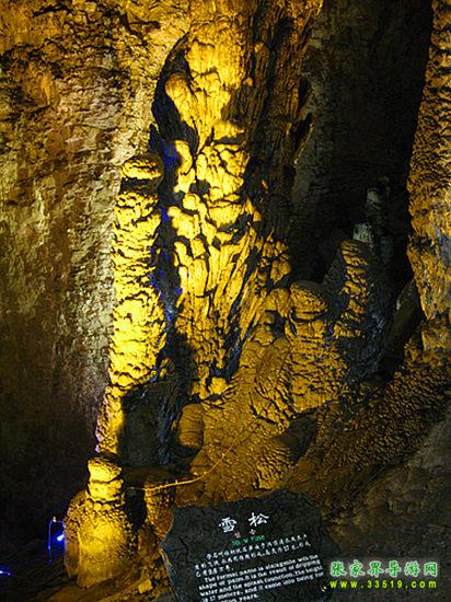 “大雪壓青松,青松挺且直。要知松高潔,待到雪化時(shí)。”這根高大的石筍就像一棵被大雪覆蓋得嚴(yán)嚴(yán)實(shí)實(shí)的松樹。它的科學(xué)名稱叫做棕櫚狀石筍,一般只能在高大的廳堂中見到。據(jù)科學(xué)家測(cè)算,它已經(jīng)在悠悠的歷史長河中挺立了10萬年。有趣的是,在雪松根部還散落著許多可愛的小松果呢!