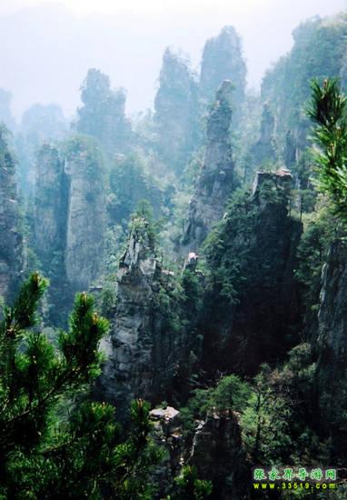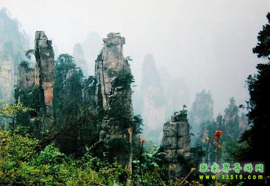 數(shù)以千計(jì)的奇峰怪石拔地而起森列谷中。在建筑師看來,石峰如塔、如柱、如屏、如樓、如堡、如墻,鱗次節(jié)比、錯(cuò)落有致,展現(xiàn)了一幅宏偉的建筑藍(lán)圖;在藝術(shù)家看來,石峰似人、似佛、似鳥、似獸、似花、似樹,似瓊樓玉宇,生動(dòng)逼真唯妙唯肖,似一幅彩色的畫卷;在軍事家看來,石峰是將、是兵,是鼓、是旗、是車、是馬,威武雄壯嚴(yán)陣待發(fā),象一支天降的軍隊(duì)。