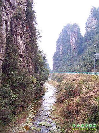 百丈峽是武陵源風(fēng)景名勝區(qū)通往張家界市的公路貫通整個(gè)峽谷,因有堵高近百丈的石壁,直插云霄,不敢仰視,故而得名。據(jù)《慈利縣志》載,索溪峪右得百丈峽,峽長(zhǎng)三十公里……又相傳向王天子起義軍與官兵在此先后博殺一百仗,依此又名百仗峽。明代九永兵備胡桂芳,一生好游歷山川,來到百丈峽后題寫了一首七言詩(shī):“峽高百丈洞云深,要識(shí)桃源此處尋;戎旅徐行風(fēng)雪緊,誰將興盡類山蔭。”刻于峽內(nèi)道旁石壁上。