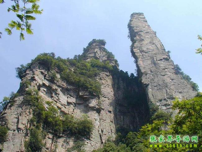 與金鞭巖隔溪對(duì)峙,矗立在斜坡上,高200余米。上下粗細(xì)一般,峰體渾圓,色赤,呈70度角向金鞭溪傾斜,形似醉酒羅漢,欲倒不倒,似醉非醉,詼諧幽默。清嘉慶學(xué)士彭之臣在峰壁書寫一“忠”字。清道光四年(1824),貢生彭之運(yùn)作《壁忠記》譯文以彰其勝。風(fēng)雨蒼桑,“忠”字因山石崩塌遭毀,《記》存于當(dāng)?shù)刂緯小?/p>