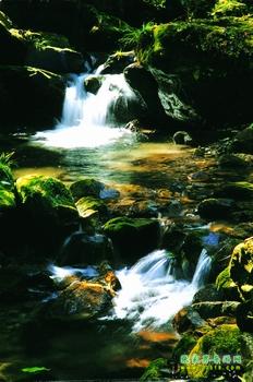為沙刀溝第一景。一塊崩塌的巨石橫臥溪中。石的一端擱于右岸,供成一孔。溪水穿孔而過,發(fā)出叮叮咚咚的響聲,在溪內(nèi)沖成一個(gè)1米多深的潭。潭水清澈如鏡,潭底紅白砂石光潔晶瑩,魚、蛙時(shí)而嬉游其中。潭兩邊石峰高聳環(huán)峙,闊葉林、灌木叢茂密常青,峰麓遍生苔蘚,如鋪綠毯。山峰、碧空倒映潭底,水中掠過縷縷白云。潭右上方有一高約50米、直徑約5米的石柱立于路旁,綠葉扶疏,秀麗挺拔,與清心潭陪襯成奇特佳境。立潭觀景,塵念俱消。
