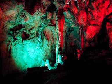 全洞只有一個裂縫狀的入口,由三組洞穴和18個“廳堂”組成,呈不對稱的樹枝狀展開,洞累計長達1870米,洞域總面積為84150平方米。洞內通道曲折幽奇,怪石叢生。入洞約300米,環(huán)顧四周, 好似“山窮水復疑無路”,而仔細探尋,上方竟有尺許小洞,其圓如鏡,只容鉆入,鉆入之后,則是“柳暗花明又一村”,入大洞天,令人咋舌,三號洞內,那只聞其聲、難見其形的地下飛泉瀑布,聲若虎嘯雷鳴,使人毛骨悚然。行至深處,深潭擋路,一座又窄又滑的天生“小橋”飛架其上,令人望而卻步。二號洞后段則是一個福地洞天。深處的“天窗”猶如一彎朗月高懸,景觀奇異,叫人更加流連忘返。錫巖仙洞的石筍、石林、石柱、石幔琳瑯滿目,千姿百態(tài),鬼斧神工,維紗維肖。“珍珠傘”勝景,美無倫比。