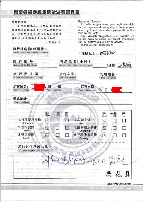 2011年3月18日衛(wèi)先生旅游服務(wù)質(zhì)量反饋:導(dǎo)游服務(wù)很好