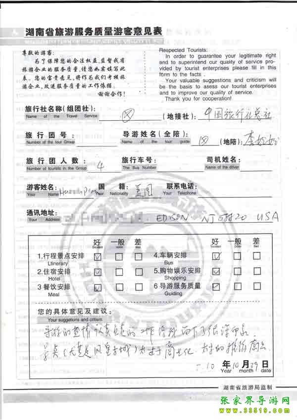 2010年10月29日美國(guó)Mr Pcm旅游旅游質(zhì)量反饋:導(dǎo)游認(rèn)真熱情,印象很深刻