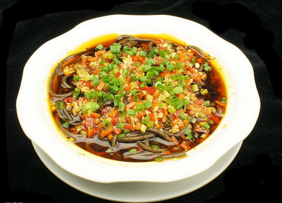 “蕨根粉”的樣子看上去就是黑色的粉絲,它是從野生蕨菜的根里提煉出來(lái)的淀粉類做成的粉絲食品。因?yàn)檗Р说母亲仙模宰龀龅姆劢z也就成了“黑粉絲”。蕨根粉保留了蕨菜根里大部分營(yíng)養(yǎng)(涼粉、粉絲營(yíng)養(yǎng)與原料比損失的多且豆粉的不易消化),而“蕨根”對(duì)人體的保健作用是根莖類食物里名列前茅的,這也是符合顏色越深的,營(yíng)養(yǎng)越高規(guī)律的又一個(gè)例子。